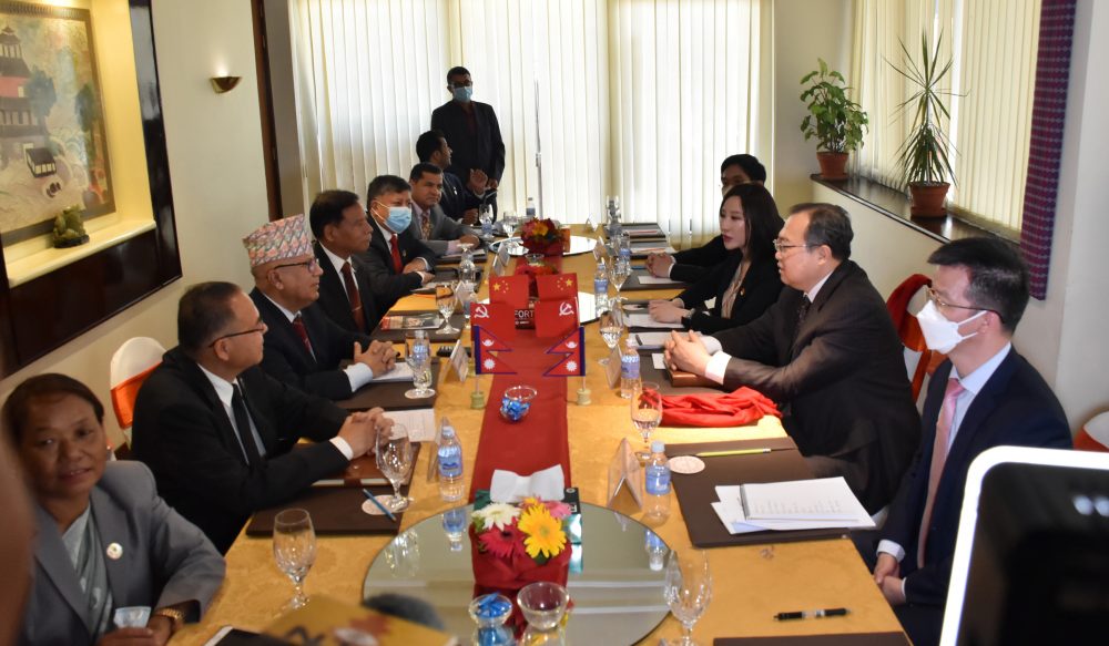 काठमाडाैं । नेकपा (एकीकृत समाजवादी)का अध्यक्ष माधवकुमार नेपालसँग नेपाल भ्रमणमा रहेका चिनियाँ कम्युनिष्ट पार्टी (सीपीसी)का विदेश विभाग प्रमुख लिउ जियानचाओले आज शिष्टाचार भेट गरेका छन् । नयाँ बानेश्वरस्थित एक होटेलमा उनीहरूबीच भेटवार्ता भएको हो ।