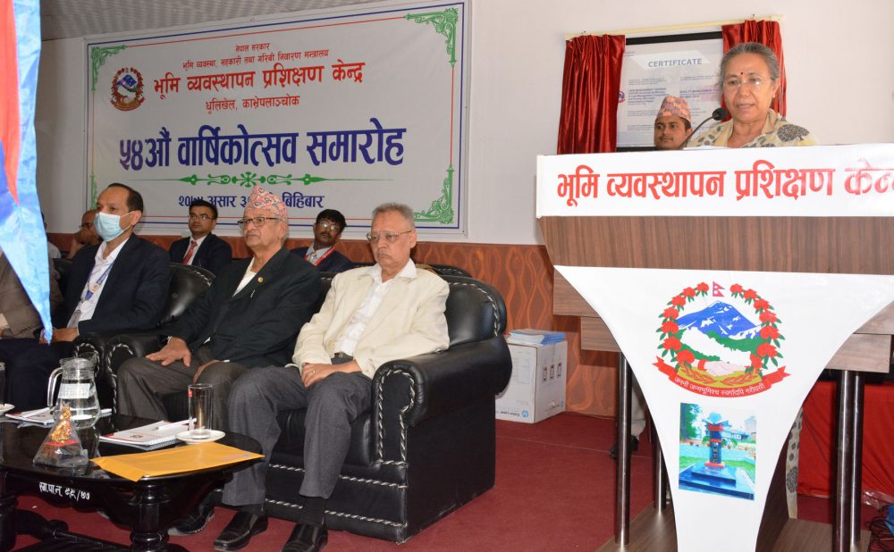 काभ्रे धुलिखेलस्थित बखुण्डोलमा रहेको भूमि व्यवस्थापन प्रशिक्षण केन्द्रको आज ५४औँ वार्षिकोत्सव कार्यक्रममा उनले विभागीय कार्यालयका रुपमा स्तरोन्नति भएको भूमि व्यवस्थापन प्रशिक्षण केन्द्रले प्राप्त गरेको आइएसओ ९००१ः२०१५ प्रमाणीकरण भएकामा प्रशंसा गरिन् ।