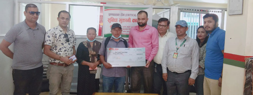 काठमाडौं । गुराँस लाइफ इन्स्योरेन्स कम्पनी लिमिटेडमा केही वर्ष पहिले जीवन बिमा गर्दा प्राणघातक रोगको सुविधा लिएका एक मुटु रोग लागेका बिमितलाई कम्पनीले ३० लाख रुपैयाँ भुक्तानी गरेको छ ।