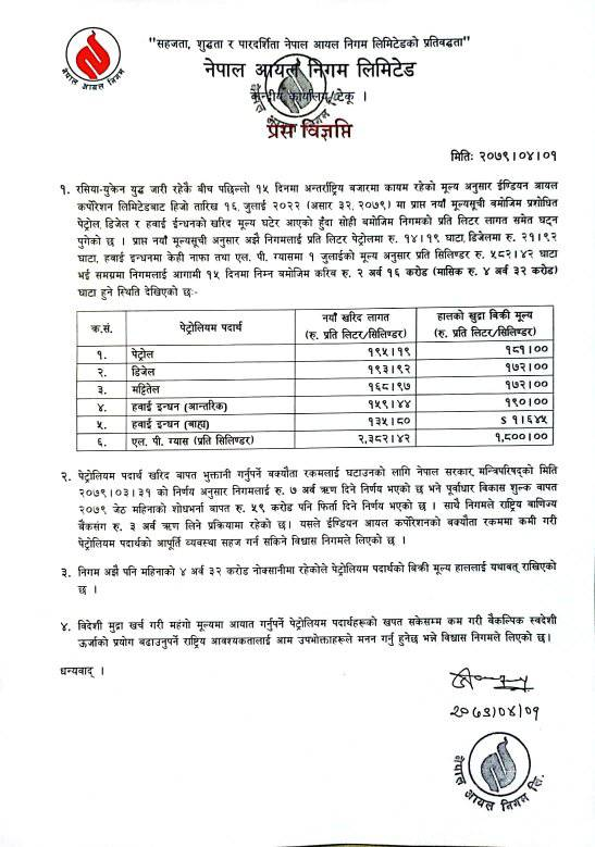 निगमका अनुसार नयाँ मूल्य सूचीअनुसार अझै निगमलाई पेट्राेलमा प्रतिलिटर १४ रूपैयाँ १९ पैसा र डिजेल मट्टितेलमा २१ रूपैयाँ ९२ पैसा घाटा रहेकाे छ । नयाँ मूल्यअनुसार निगमलाई मासिक ४ अर्ब ३२ कराेड घाटा हुने निगमले जनाएकाे छ ।
