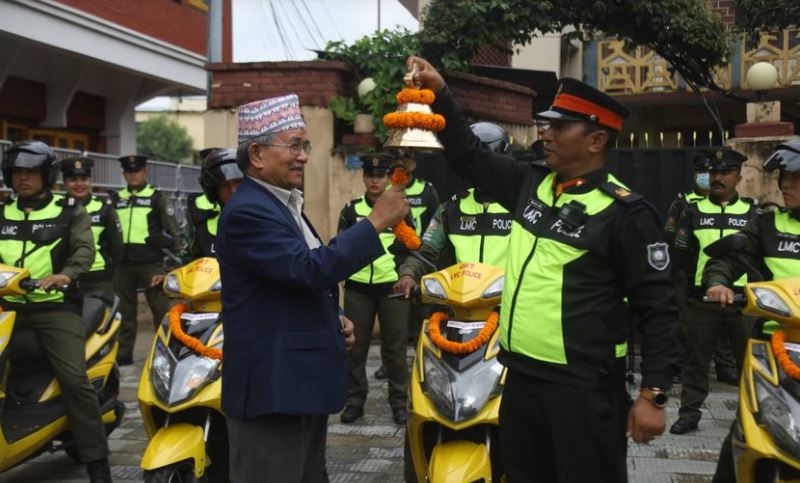 काठमाडौं । ललितपुर महानगरपालिका प्रहरीको समूहले विद्युतीय स्कुटरमा गस्ती थालेका छन् । बिहीबार एक कायक्रममा मेयर चिरिबाबु महर्जनले नगरप्रहरीलाई गस्तीका लागि स्कुटर हस्तान्तरण गरेका हुन् ।उनिले गस्तीको उद्घाटन पनि गरे ।