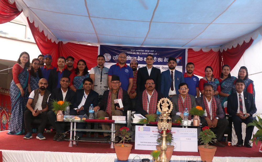 त्यसपश्चात प्रमुख अतिथि एवं प्रमुख कार्यकारी अधिकृत श्रेष्ठले उपकार्यकारी अधिकृत विमल डंगोललाई ब्लड ब्याग हस्तान्तरण गरेर सुरु गरिएको रक्तदान कार्यक्रममा एक सय २१ जना बैंक कर्मचारीहरुले रक्तदान गरेका थिए । कर्मचारी संघमा आवद्ध निवृत २७ जना बैंक कर्मचारीहरुलाई संघको आजिवन सदस्य पदक प्रदान गरिएको थियो । सथै बनेपा–५ स्थित घोकेचौर उद्यानलाई रु ११,१११।– रुपैंया आर्थिक सहयोग गरिएको छ ।
