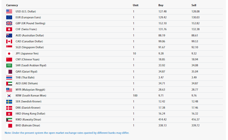 त्यसैगरी, जापानी यान १० को खरिददर ९ रूपैयाँ २८ पैसा रहेको छ भने बिक्रीदर ९ रूपैयाँ ३२ पैसा रहेको छ । यसैगरी साउदी रियाल एकको खरिददर ३३ रूपैयाँ ९२ पैसा रहेको छ भने, बिक्रीदर ३४ रूपैयाँ ०८ पैसा रहेको राष्ट्र बैंकले जनाएको छ ।