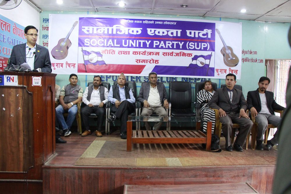 पार्टीका प्रवक्ता मुरारी पाण्डेले स्वागत मन्तब्य राखेका थिए । त्यस्तै पार्टीका वरिष्ठ उपाध्यक्ष रोशन खतिवडाले प्रेश विज्ञप्ती पढेर सुनाएका थिए । उनले सामाजिक न्यायको नारा लिएर छोटो समयमा नै आफ्नो पार्टी लोकप्रिय भएको बताए । उक्त पार्टीको चुनावचिन्ह गीतार रहेको छ ।
