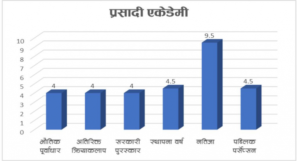 निरन्तर अब्बल माविमा रुपमा दरिदैं आएको ललितपुरको मानभवनस्थित प्रसादी एकेडेमी यस पटक पनि अब्बल माविको सूचीमा पहिलो नम्बरमा छ । सधैं अब्बल नतिजा दिनुको कारण प्रसादीले अगालेको ‘एकल कार्यक्रम, एकल व्यवस्थापन’को नीति भएको माविका प्राचार्य विक्रम राई बताउँछन् । झण्डै दुई दशक बढी समयदेखि प्रसादीले आफ्नो छुट्टै मानक स्थापित गर्न सफल भएको छ । सिमित भर्ना, अनुभवी शिक्षकबाट पठनपाठन प्रसादीको सफलताका मुख्य कारक हुन् । विद्यार्थीमैत्री वातावरण, अनुशासनजस्ता कुराहरुले पनि प्रसादीको नतिजालाई सधैं अब्बल बनाउन भूमिका खेलेका छन् । २४ वर्षदेखि ११ र १२ कक्षा मात्रै पढाइरहेको प्रसादीले लगातार चार पटक उत्कृष्ट उच्च माविको पुरस्कार पाएको छ ।