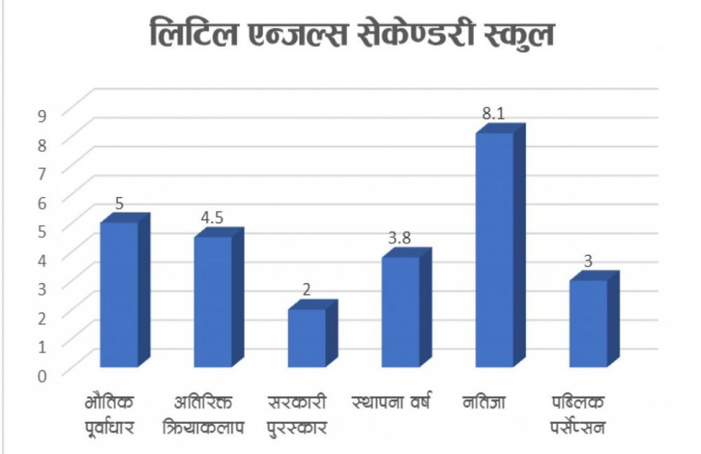 हात्तीवनस्थित लिटिल एन्जल मावि उत्कृष्ट नतिजा दिने मावि हो । विद्यार्थीहरुलाई केन्द्रमा राखेर कक्षाहरु लिने भएकाले लिटिल एन्जलले उत्कृष्ट नतिजा दिदैं आएको हो । अनुभवी शिक्षक विद्यार्थीहरुलाई व्यक्तिगत रुपमा काउन्सिल गर्ने, चिन्ने र समस्या बुझ्ने खालको वातावरण एलएमा रहेको प्रिन्सिपल कृष्णदत्त अवस्थीले बताए । ‘हामीले विद्यार्थीलाई विभिन्न प्रकारका एक्टीभिटिज, प्रोजेक्ट वर्क, विशेष कक्षा, औपचारिक कक्षा, पब्लिक स्फिकिङ, नेतृत्व विकास, पटक—पटक टेष्टहरु, परीक्षा केन्द्रीत प्रयाक्टिस गराउने भएकाले नै हाम्रो नतिजा उत्कृष्ट छ,’ उनी भन्छन् । एलएले विद्यार्थीहरु इन्ट्रान्सबाट छनोट गर्ने भएकाले सकेमसम्म राम्रा विद्यार्थी मात्रै भर्ना लिन्छ । अवस्थी भन्छन्, ‘विद्यार्थी र अभिभावकको पनि नतिजा राम्रो हुनुमा योगदान हुन्छ,’ उनी थप्छन् । २५ वर्षदेखि ११ र १२ कक्षा पढाइरहेको लिटिल एन्जल्सले दुई पटक उत्कृष्ट माविको अवार्ड पाएको छ ।