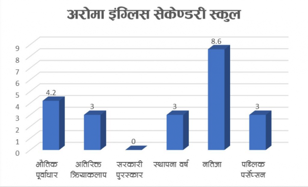 अरोमा इंग्लिस सेकेण्डरी स्कुलको अब्बल नतिजाको प्रमुख कारण विद्यार्थीको ‘केयरिङ’ र शिक्षकको ‘डिभोसन’ हो । १३ वर्षदेखि कक्षा ११ र १२ मा विज्ञान र व्यवस्थापन पढाइ हुने भरतपुरस्थित अरोमा मोफसलको उत्कृष्ट मावि हो । ‘फूलटाइम फ्याकल्टी हाम्रो सफलताको प्रमुख कारण हो,’ अरोमा प्रिन्सिपल शेरबहादुर क्षेत्री भन्छन्, ‘अब्बल व्यवस्थापन, अनुभवी र फूलटाइम शिक्षकका हाम्रा स्ट्रेन्थ हुन् ।’ विद्यार्थीको होमवर्क चेक, विद्यार्थीलाई पर्याप्त समय दिने सशक्त टिमले विद्यार्थीको अन्तरमन प्रस्तुष्टन गराउन भूमिका खेल्दै आएको छ । १३ वर्षदेखि कक्षा ११ र १२ लाई पठाइरहेको यो माविले उत्कृष्ट माविको पुरस्कार भने पाएको छैन । एमबीबीएस, इन्जिनियरिङ, भेटेनरी र कृषिलगायतका प्राविधिक विषयमा पूर्ण छात्रवृत्तिमा पनि यो माविका विद्यार्थीले नाम निकाल्दैं आएका छन् ।