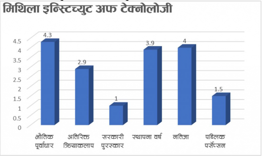 जनकपुरस्थित मिथिला इन्स्टिच्युट अफ टेक्नोलोजी पनि मोफसलमा राम्रो नतिजा दिने माविमा पर्छ । मिथिलाको उत्कृष्ट नतिजाको कारण राम्रो शिक्षकको टिम, विद्यार्थीहरुमा कडा अनुशासन कायम गर्नु र एक्स्ट्रा क्लास गर्नु रहेको माविका प्रिन्सिपल मनोजकुमार साह बताउँछन् । ‘हामी रेगुलर अफलाइन र अनलाइनमा क्लास गर्छौ,’ उनी भन्छन्, ‘शिक्षकको टिम पनि वेष्ट छ ।’ त्यही कारण मिथिला मधेश प्रदेशमा अनुशासन र पढाइमा नम्बर वान छ । २२ वर्षदेखि कक्षा ११ र १२ को अध्यापन गराइरहेको मिथिलाले एक पटक उत्कृष्ट माविको पुरस्कार पाएको साहले जानकारी दिए ।