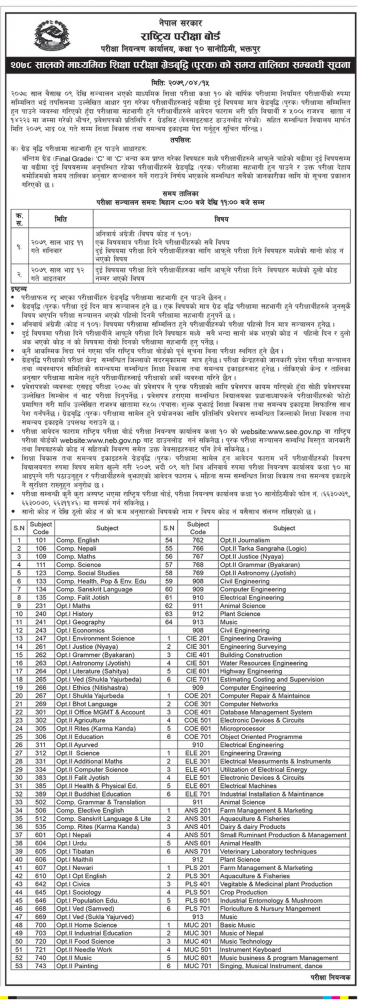 विद्यार्थी बढीमा दुई विषयमा मात्रै पुरक परीक्षा दिन पाउने व्यवस्था छ । परीक्षामा सहभागी हुने विद्यार्थीले तोकिएको राजश्व तिरी सम्बन्धित विद्यालयमा फाराम भर्न सक्नेछन् । परीक्षा भदौको ११ र १२ गतेका लागि तय भएको छ ।