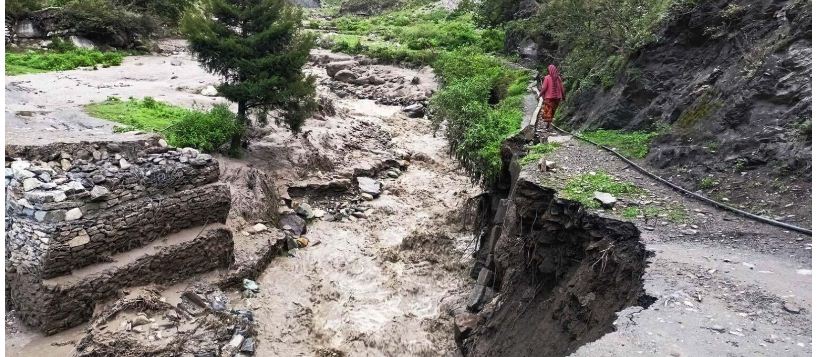 मराङखोलामा आएको बाढीले पुल बगाएपछि आवतजावत बन्द