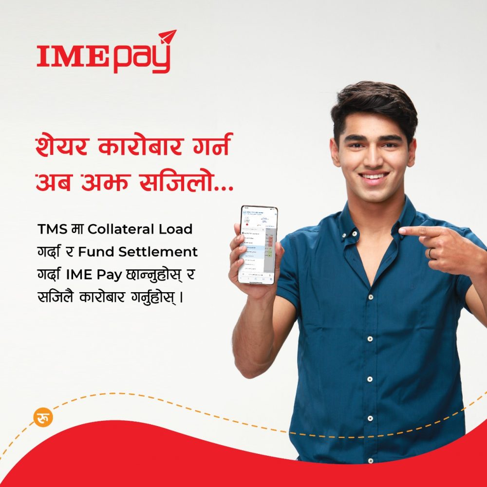 काठमाडौं । सेयर लगानीकर्ताले आफ्नो टीएमएसमार्फत आईएमई पे छनोट गरी आफूले ब्रोकरलाई सेयर खरिद गरेबापत गर्नुपर्ने भुक्तानी साथै सेयर खरिद गर्न चाहिने कोल्याट्रल लोड गर्न सक्नेछन् । हाल यो सुविधा ३५ भन्दा बढी ब्रोकरमा उपलब्ध छ । आगामी दिनमा बाँकी ब्रोकरहरू पनि थपिने कम्पनीले जानकारी दिएको छ ।