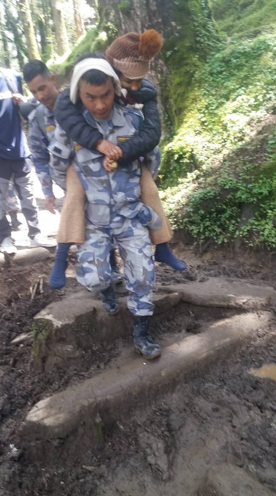 सो बारे जानकारी प्राप्त भएपश्चात सशस्त्र प्रहरी बल नेपाल नम्बर २० गुल्म रसुवाबाट गएको सशस्त्र प्रहरीले उनीहरुलाई पिठ्यूमा बोकी धुन्चे अस्पताल ल्याउने क्रममा उनीहरुको बाटोमै स्वास्थ्यमा सुधार आएपछि आफन्तको जिम्मा लगाई पठाइएको छ ।