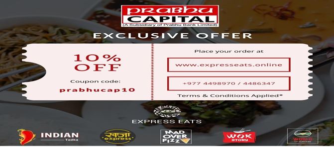 यो योजना अन्र्तगत प्रभु क्यापिटलका हितग्राही ग्राहकले एक्सप्रेस ईट्सबाट अनलाईन अर्डर गरी सेवा लिदा १० प्रतिशत छूट पाउने भएका छन् ।