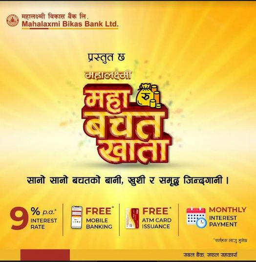 महालक्ष्मी विकास बैंकद्वारा उच्चतम ब्याजदरको महाबचत खाता सार्वजनिक