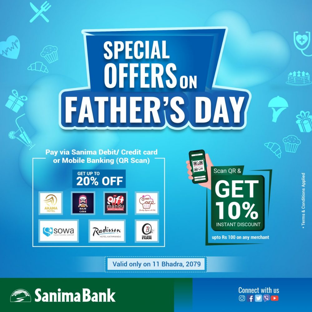सानिमा बैंकले गर्याे बुवाको मुख हेर्ने दिनमा विशेष छुटको योजना सार्वजनिक