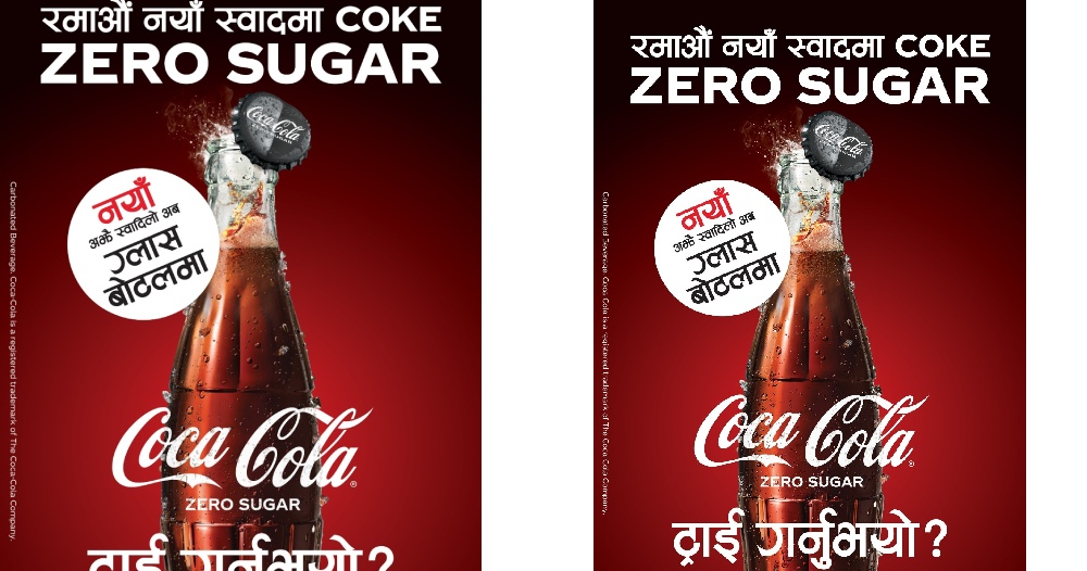 स्थानीय उपभोक्ताहरुसँग आफ्नो सम्बन्ध अझै नजिक बनाउने आफ्नो प्रतिबद्धता अनुसार कोका–कोलाले निरन्तररुपमा उनीहरुको जीवन–शैली र आवश्यकता अनुरुपको विभिन्न स्वाद र प्याकेजिङमा आफ्ना उत्पादनहरु बजारमा ल्याउँदै आइरहेको जनाएको छ । कोका–कोला जेरो सुगरको नयाँँ आरजिबि प्याक २५० मिलिमा उपलब्ध छ । साथै यसको पेट प्याक २५० मिलि र ५०० मिलिमा उपलब्ध रहेको छ ।