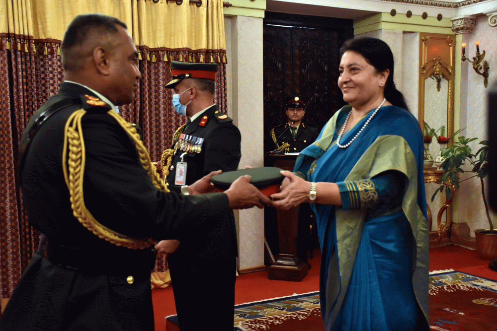राष्ट्रपति भण्डारीबाट भारतीय सेनाध्यक्ष पाण्डेलाई मानार्थ महारथी दर्जा प्रदान