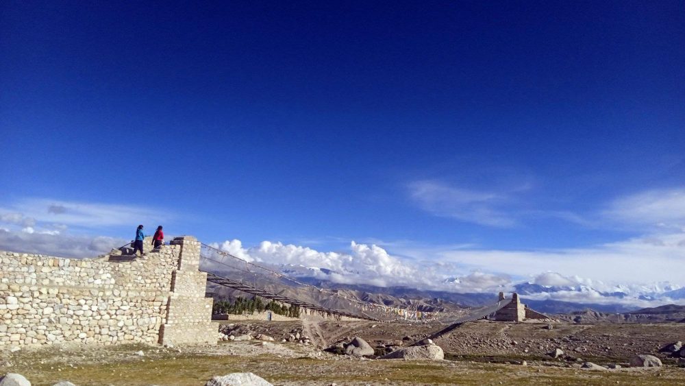 मुस्ताङको लोमान्थाङ गाउँपालिका ४ मा पर्ने ठाडो खोलामा निर्माण गरिएको झोलुंगे पुल । यो पुल निर्माण भए पछि यहाँका स्थानीयलाई सहज भएको छ । तस्बिर : ध्रुवसागर शर्मा