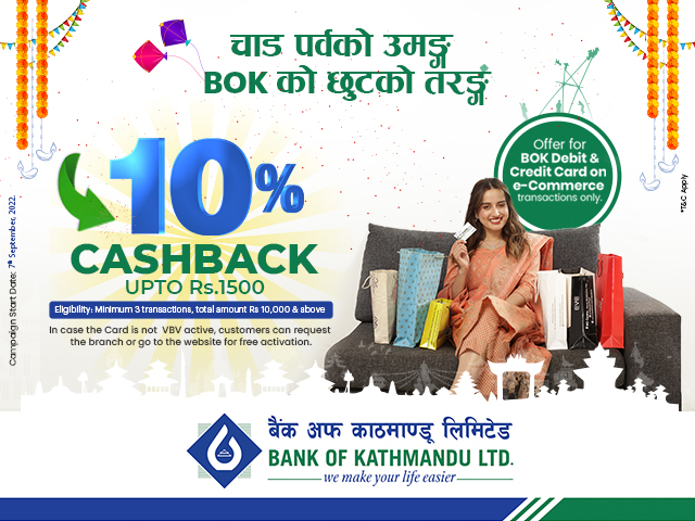बैंक अफ काठमाण्डू लिमिटेडको कार्डबाट ई-कर्मश कारोबारमा क्यासव्याक योजना