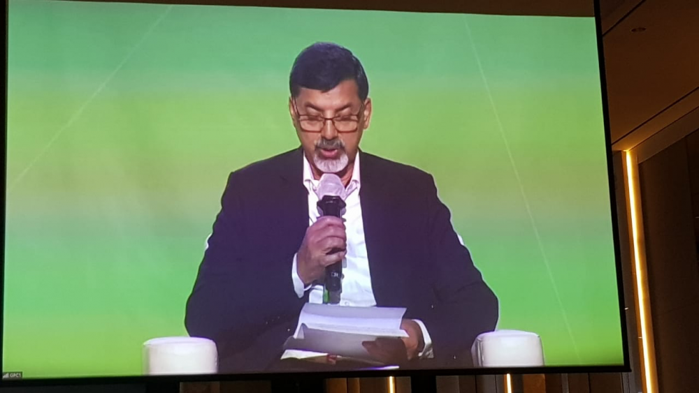 पेरिस सम्झौता र जलवायु परिवर्तनसम्बन्धी संयुक्त राष्ट्र सङ्घ फ्रेमवर्क कन्भेन्शनमा हस्ताक्षर गरिसकेको जानकारी दिए । नेपालले सन् २०४५ सम्ममा कूल शून्य उत्सर्जनको लक्ष्य हासिल गर्ने प्रतिबद्धता जनाएको तथा स्थानीय जलवायु कार्यलाई समर्थन गर्न उपलब्ध जलवायु वित्तको कम्तीमा ८० प्रतिशत खर्च गर्ने नीति रहेको अर्थमन्त्रीको भनाइ छ । स्वच्छ ऊर्जा व्यापारको माध्यमबाट विश्वव्यापी जलवायु परिवर्तन न्यूनीकरणमा आफ्नो योगदानलाई आफ्नो सिमानाबाहिर मान्यता दिइने उहाँको भनाइ छ ।