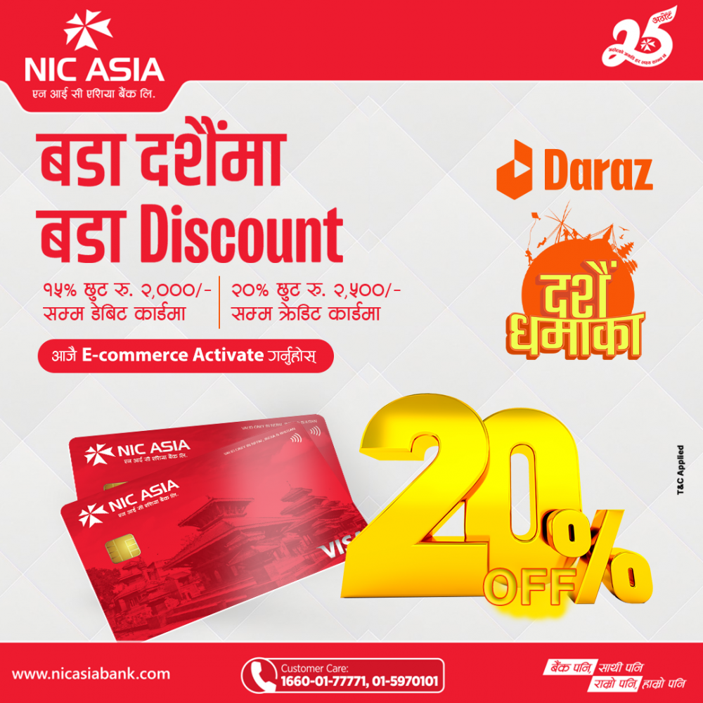 एन आई सी एशीया बैंकका ग्राहकले दराज अनलाईनमा आकर्षक छुट पउने