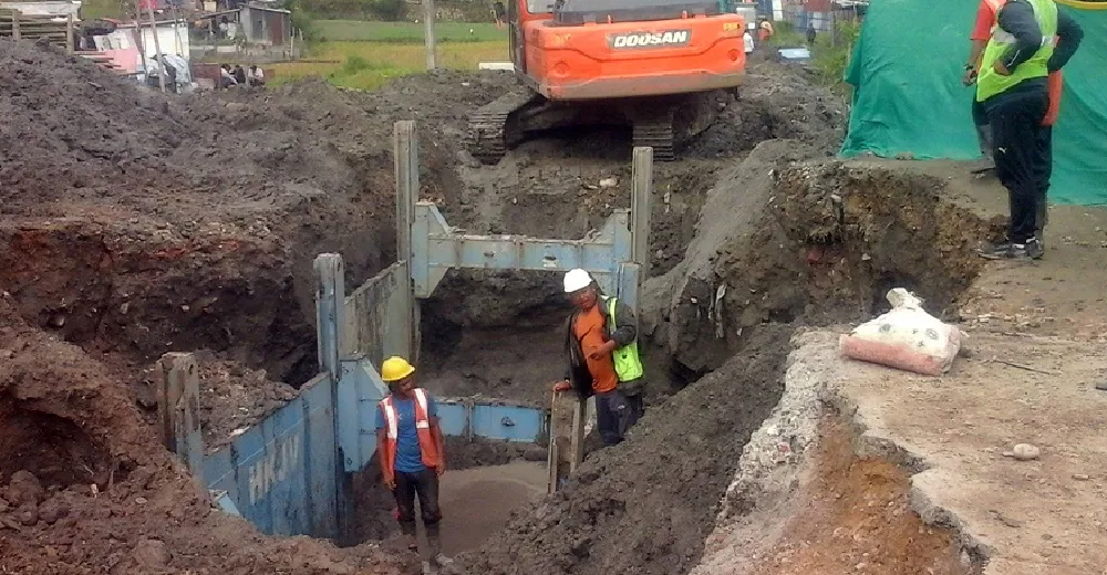 हवास उई कङ्काई कम्पनी जेभीले पाइप विच्छ्याउने कामको ठेक्का पाएको छ । सन् २०२१ अप्रिलदेखि सुरु भएको काम दुई वर्षमा सकिने सम्झौता भएको छ । रु दुई अर्ब ८८ करोडको लागतमा काम भइरहेको आयोजनाका सूचना अधिकारी श्रेष्ठले बताए । सुन्दरीजलबाट गोकर्णेश्वर महादेव मन्दिरमाथिको जगडोल डाँडासम्म जग्गा अधिग्रहण गरेर ठूला पाइप विच्छ्याइएको छ । जगडोल डाँडाबाट चाबहिलसम्म भने सडकमा ठूला पाइप विच्छ्याइनेछ । – रासस