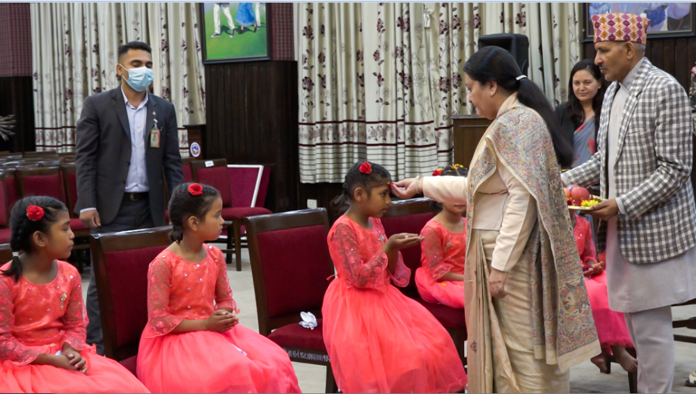 ती कन्यालाई बालमन्दिरबाट लगिएको हो । दसैँ पर्वका अवसरमा महानवमीको दिनमा राष्ट्रपतिले नवकन्याको पूजा प्रत्येक वर्ष गर्दै आएकी छन् । उक्त समारोहमा नव कन्याले अन्तिममा नृत्यसमेत गरेका थिए । सो नृत्यको राष्ट्रपति भण्डारीले अवलोकन गरेकी थिइ्न् । रासस
