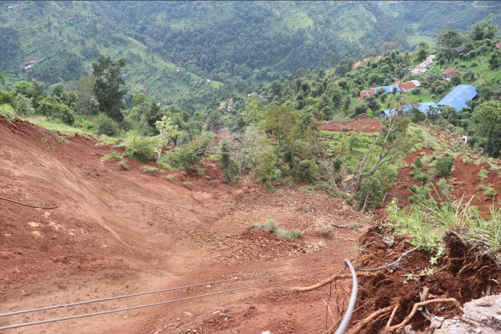 ‘पहिला एउटा पाटोमा मात्रै ठूलो पहिरो थियो, अहिले अर्को पाटो पनि बग्यो,’ वडाध्यक्ष ज्ञानेन्द्र गौतमले भने, ‘सुरक्षित छन् भनेका घर र यहाँ रहेका पशुपक्षीको फार्मसमेत पुरिने अवस्थामा पुगे ।’