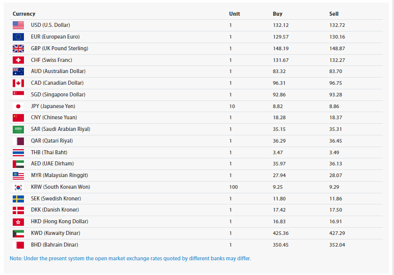 त्यसैगरी, जापानी येन १० को खरिददर ८ रुपैयाँ ८२ पैसा रहेको छ भने बिक्रीदर ८ रुपैयाँ ८६ पैसा रहेको छ । यसैगरी साउदी रियाल एकको खरिददर ३५ रुपैयाँ रहेको १५ पैसा रहेकाे छ भने, बिक्रीदर ३५ रुपैयाँ ३१ पैसा रहेको राष्ट्र बैंकले जनाएको छ ।