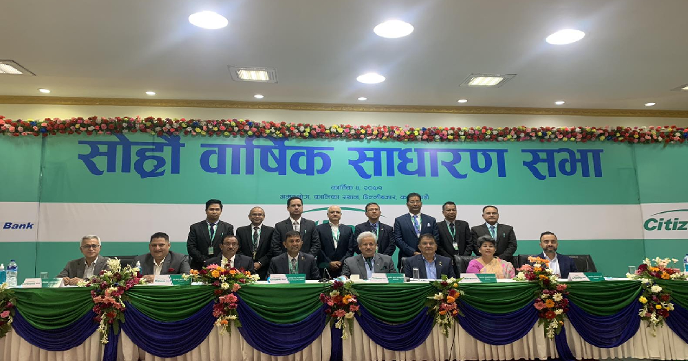 सिटिजन्स बैंकको १६औं वार्षिक साधारणसभाद्वारा ९ प्रतिशत नगद लाभांश पारित