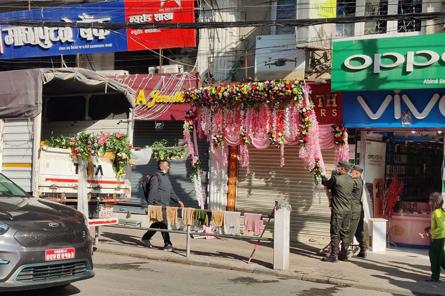 काठमाडौं । काठमाडौं महानगरपालिकाले न्युरोडका पसलहरूमा सजावटका लागि राखिएको नक्कली प्लास्टिका माला हटाएको छ । व्यपारीहरुले तिहारको लागि पसल सजाउन सटरमाथि राखेको झिलिमिली महानगरले आज (आइतबार) हटाएको हो ।