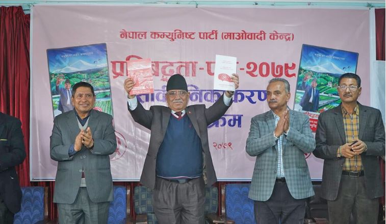 काठमाडौं । नेकपा(माओवादी केन्द्र)ले आगामी मङ्सिर ४ गतेका लागि तय भएको प्रतिनिधिसभा र प्रदेशसभाका लागि घोषनापत्र सार्वजनिक गरेको छ । पार्टी केन्द्रीय कार्यालय पेरिसडाँडामा आज आयोजित कार्यक्रममा पार्टी अध्यक्ष पुष्पकमल दाहाल‘प्रचण्ड’ले घोषनापत्र सार्वजनिक गरेका हुन् ।
