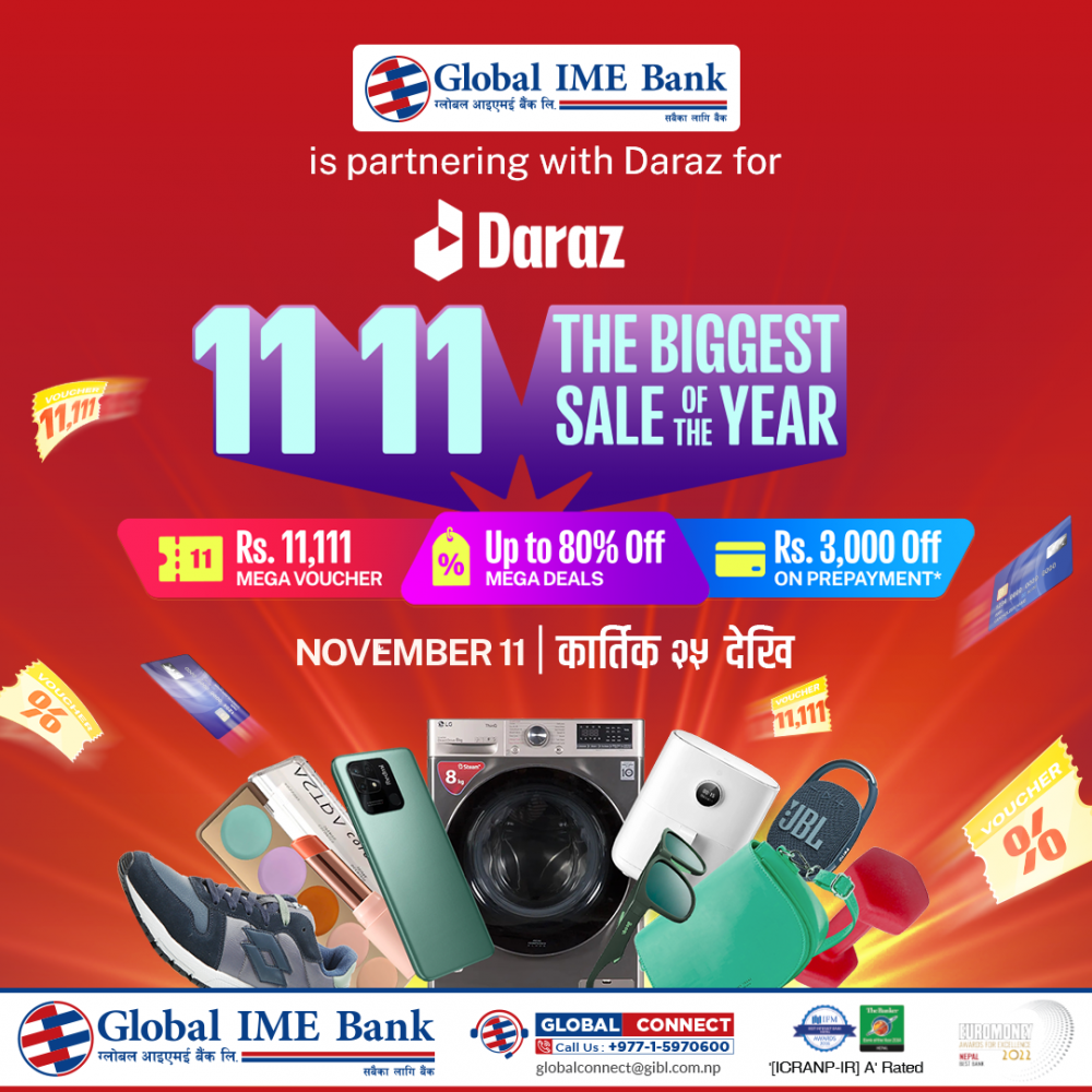 ग्लोबल आइएमई बैंकका ग्राहकलाई दराज ११ः११ मा २० प्रतिशत छुट
