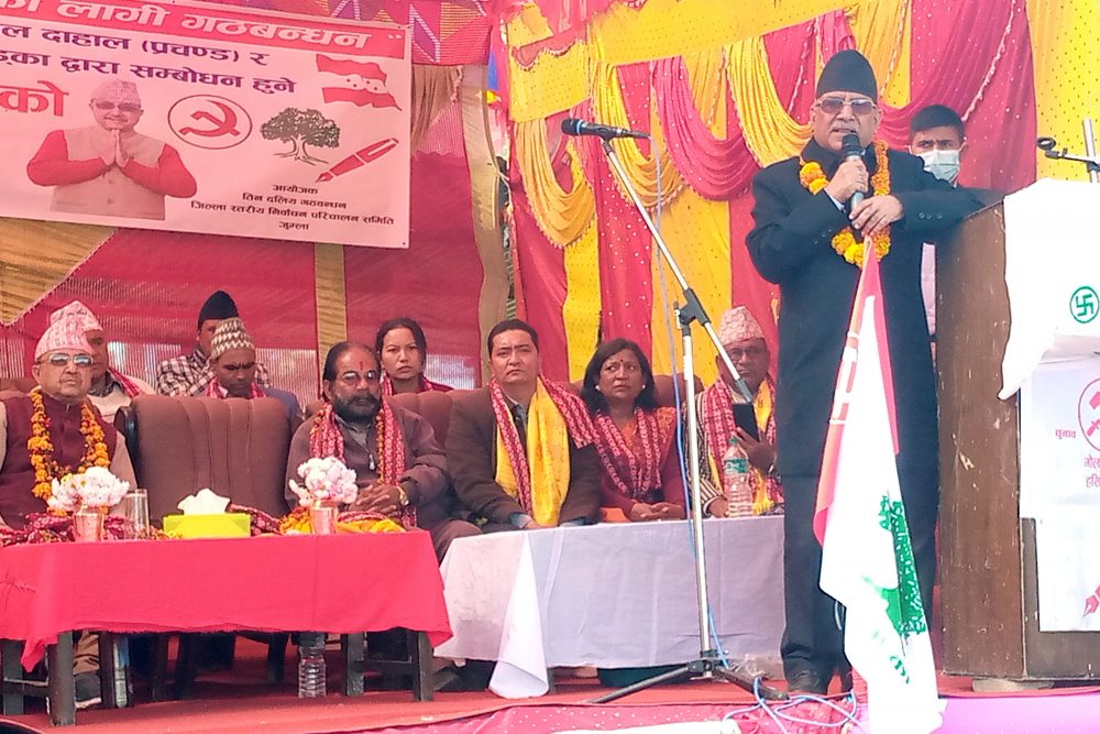 जुम्ला । नेकपा माओवादी केन्द्रका अध्यक्ष पुष्पकमल दाहाल ‘प्रचण्ड’ले कर्णालीको विकास आफ्नो प्राथमिकतामा रहेको बताएका छन् । यहाँको विकासबारे सत्ता गठबन्धनका बैठकहरुमा पनि छलफल हुने गरेको भनदै उनले आगामी दिनमा आफूले यहाँको विकासका बारेमा थप जोड दिने प्रतिबद्धता व्यक्त गरे ।