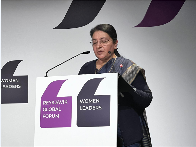 काठमाडाैं । राष्ट्रपति विद्यादेवी भण्डारीले नेपाल मानव अधिकार, समानता, भेदभावरहित, रुपान्तरणका सिद्धान्त आत्मसात् गरिएको समावेशी लोकतन्त्र संस्थागत गर्ने मार्गमा रहेको बताएकी छन् । गणतन्त्र आइसल्याण्डको राजधानी रेक्याभिकमा आयोजना भएको रेक्याभिक ग्लोबल फोरम (वुमन लिडर्स) मा विशेष सम्बोधन गर्दै राष्ट्रपति भण्डारीले समानता र न्यायपूर्ण समाजको निर्माणका लागि शिक्षा, सार्वजनिक स्वास्थ्य, रोजगारी तथा समावेशी सामाजिक, राजनीतिक प्रबन्धमा लगानी गरिरहेको जनाएकी हुन् ।