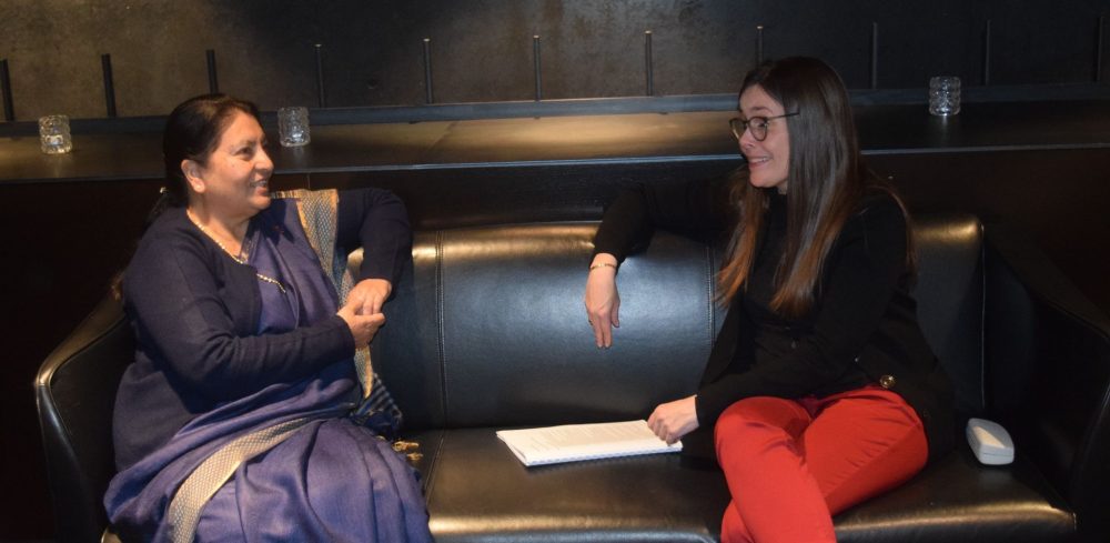 काठमाडौँ । राष्ट्रपति विद्यादेवी भण्डारीसमक्ष विभिन्न देशका महिला नेताहरूले शिष्टाचार भेटघाट गरेकी छन् । राष्ट्रपति भण्डारीसमक्ष आइसल्याण्डका प्रधानमन्त्री एवं विश्व महिला नेतृत्व परिषद्का अध्यक्ष क्याट्रिन याकोब्सडोटिरले शिष्टाचार भेट गरिन् । उक्त अवसरमा नेपाल र आइसल्यान्डबीचको सम्बन्ध, लैङ्गिक समानता, जलवायु परिवर्तनलगायत विषयमा विचार आदानप्रदान भएको थियो ।