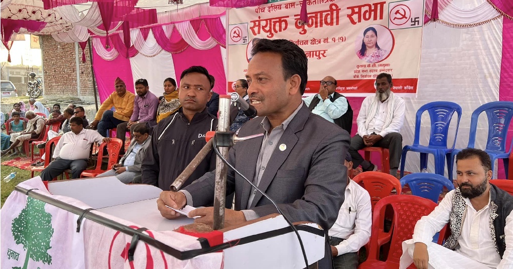 कार्यक्रममा नेपाली काँग्रेसका नेता हुर्मत न्यौपाने, पोषण केसी, कृष्ण कार्कीले देशभर ९१ स्थानमा प्रतिनिधि सभामा माओवादीले नेपाली काँग्रेसलाई मतदान गर्ने भन्दै बाँके निर्वाचन क्षेत्र १ र प्रदेश सभा १(१) मा कुनै संकोच नमानी गोलाकार भित्रको हँसिया हथौडामा मतदान गर्न अग्रह गरेका थिए । चुनावी सभामा माओवादी केन्द्रकी स्थाई समिती सदस्य पुर्ण कुमारी सुबेदी, एकिकृत समाजवादीका केन्द्रिय सदस्य अब्दुल हुसेन खाँले पनि गठबन्धनमा दाँयाबाँया गर्ने छुट कसैलाई नभएको भन्दै आगामी सरकार गठबन्धनको बन्ने र यसले बिकास र समृद्धीको नेतृत्व गर्ने दाबी गरे ।
