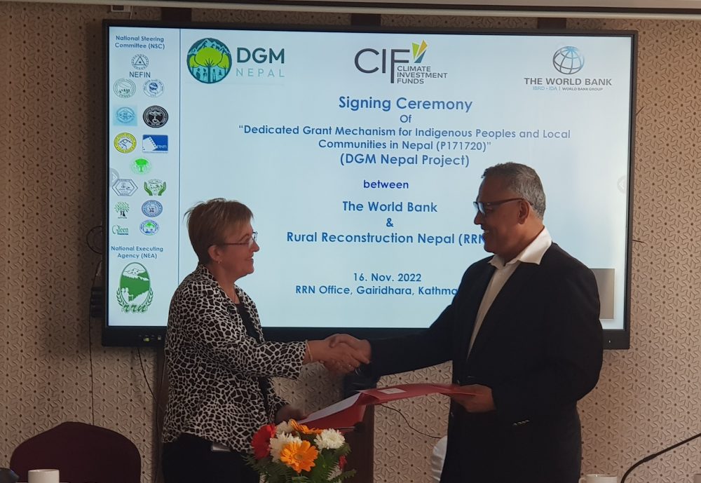 नेपालमा आदिवासी जनजाति र स्थानीय समुदायका लागि पाँचवर्षे लक्षित अनुदान संयन्त्र (डीजीएम नेपाल ) परियोजनाले स्थानीय, राष्ट्रिय र विश्वव्यापी स्तरमा नेपालको वन विनास तथा वन क्षयीकरणबाट हुने कार्बन उत्सर्जन न्यूनिकरण गर्ने (रेडप्लस) प्रक्रियामा सहभागी हुन विभिन्न क्रियाकलापमार्फत आदिवासी जनजाति र स्थानीय समुदायहरू (आईपीएलसी) को क्षमता अभिवृद्धि गर्न मद्दत गर्नेछ । विशेषगरी, मधेस र लुम्बिनी प्रदेशका वनमा आश्रित समुदायको आम्दानी बढाउन र जीविकोपार्जनका अवसरहरू सिर्जना गर्न नेपाल ग्रामीण पुनर्निर्माण संस्था (आरआरएन) परियोजनाका लागि राष्ट्रिय कार्यान्वयन निकाय छनोट भएको छ ।
