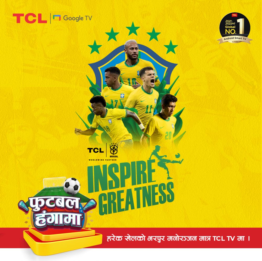 काठमाडौं । ओम्दियाबाट प्रमाणित विश्वको नम्बर १ एन्ड्रोइड टिभी ब्राण्ड टिसिएलले यो अन्तराष्ट्रिय फुटबल प्रतियोगितालाई लक्षित गरेर ‘फुटबल हंगामा’ नामक योजना सार्वजनिक गरेको छ । यस योजना अन्तर्गत ग्राहकहरुले टीसीएल टेलिभिजनको खरिद गर्दा आकर्षक नगद छुट र फ्री टीसर्ट प्राप्त गर्न सक्ने कम्पनीले जनाएको छ ।