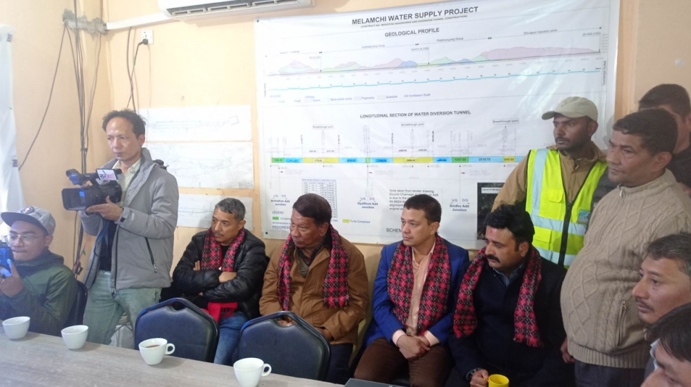 आज सिंहलगायत बागमती प्रदेशका पर्यटनमन्त्री दीपेन्द्र श्रेष्ठ, नवनिर्वाचित सांसद, मेलम्चीका नगरप्रमुख आइतमान तामाङ र हेलम्बुका प्रमुख निमा ग्याल्जेन शेर्पासहितले खानेपानी मुहानको अवलोकन गर्नो क्रममा हेलम्बु गाउँपालिका-१ स्थित अम्बाथान अडिटमा आयोजनाका कार्यकारी निर्देशक कमलराज श्रेष्ठले आयोजनाका बारेमा जानकारी गराउने क्रममा कर्मचारीको तर्फबाट समस्या राखे ।