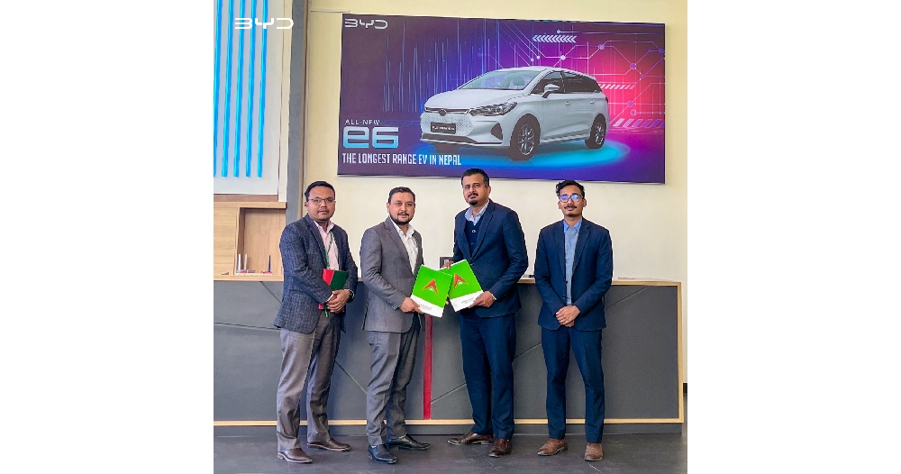 काठमाडौँ । बीवाइडीका कार किन्नको लागि नबिल बैंकले सहजरुपमा कर्जा दिने भएको छ । विद्युतीय कार किन्न चाहने ग्राहकको सहजताको लागि नेपालका लागि बीवाइडी अटो इन्डष्ट्रीजको आधिकारीक वितरक साइमेक्स इंकले बैंकिङ सुविधा प्रदान गर्ने उद्देश्यले नबिल बैंकसँग एक सम्झौँता गरेको छ ।