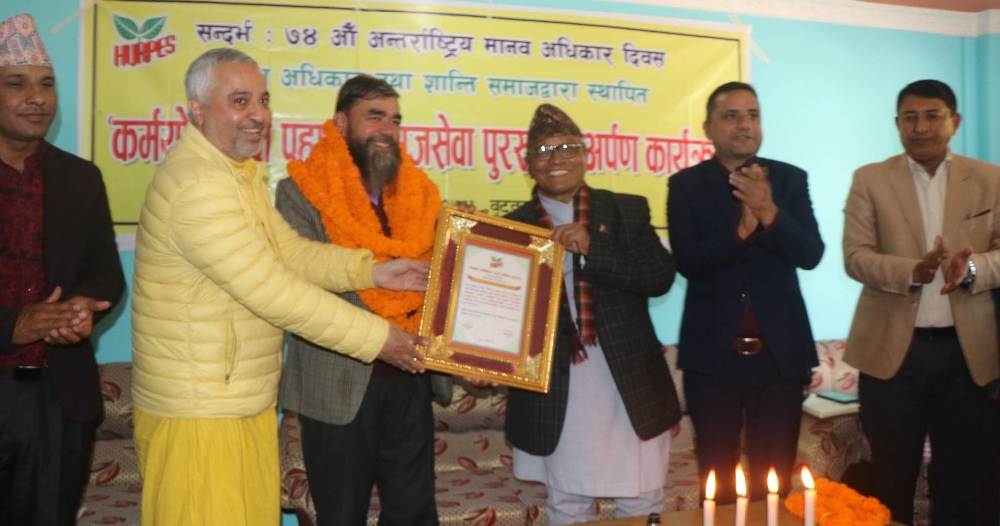 काठमाडौं । मानव अधिकार तथा शान्ति समाजद्वारा स्थापित “कर्मयोगी बद्री पहाडी समाजसेवा पुरस्कार”–२०७८ तीन दशकदेखि सामाजिक न्यायको क्षेत्रमा उल्लेखनीय योगदानका लागि संविधानसभा सदस्य विनोद पहाडीलाई प्रदान गरिएको छ ।
