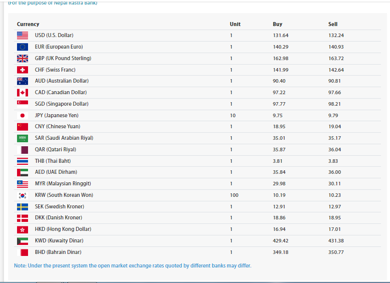 विदेशी मुद्राको विनिमयदर : आजकाे भाउ !
