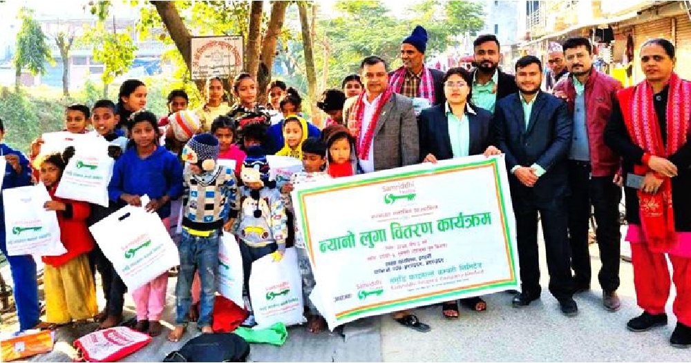 काठमाडौं । समृद्धि फाइनान्सले आईतबार इटहरीमा न्यानो लुगा वितरण गरेको छ । फाइनान्सले इटहरी वडा न. ८ मा रहेको ॐ श्री पिपलबोटे खूल्ला विधालयका एक जना शिक्षक र २५ जना विधार्थीहरुलाई न्यानो लुगा वितरण गरेको हो ।