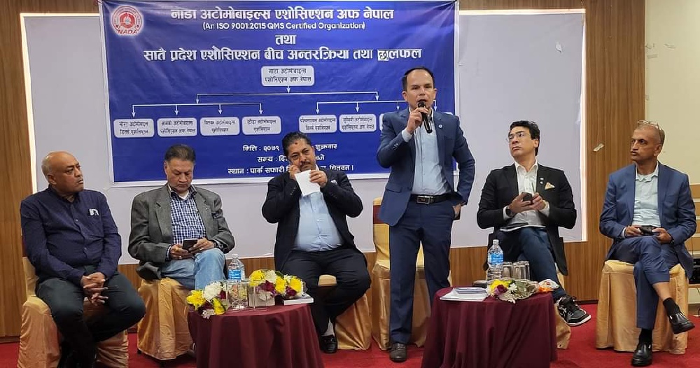 नाडाको आगामी दिनको कार्यदिशा, समग्र देशको अर्थतन्त्र तथा अटोमोबाइल ब्यवसायको बर्तमान परिस्थिति र भबिष्यको संभावना आदि विषयमा केन्द्रित रहेर यहि पौष ८ र ९ गते नाडा अटोमोबाइल्स एसोसिएसन अफ नेपाल तथा सातै प्रदेश एसोसिएसनका बीच अन्तरक्रिया तथा छलफल कार्यक्रम नाडाका पुर्ब अध्यक्षहरु समेतको उपस्थितिमा चितवनको पार्क सफारी रिसोर्टमा भब्य रुपमा सम्पन्न भएको छ ।