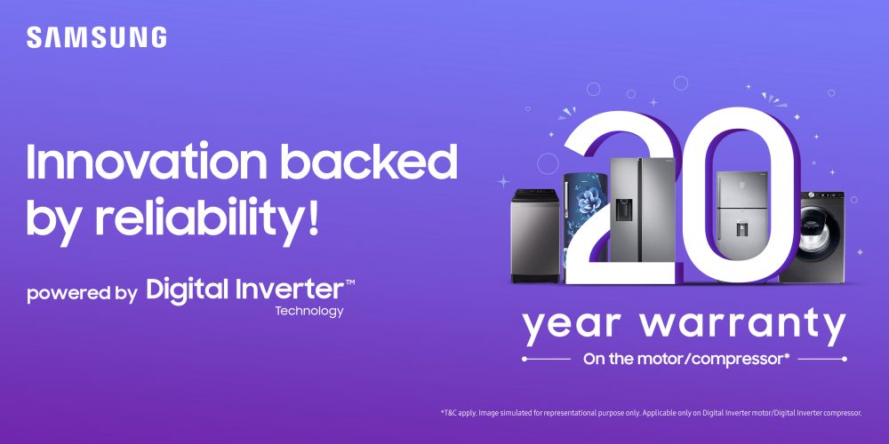 सामसङको सस्टेनएबलिटी भिजनलाई आत्मसाथ गर्दै आफ्ना वासिङ मेसिन र रेफ्रिजरेटरहरूमा प्रयोग हुने डिजिटल इन्भर्टर मोटर्स र कम्प्रेसरमा २० वर्षको वारेन्टी ल्याएको छ । घरेलु उपकरणहरू बारम्बार प्रतिस्थापनले समय र ऊर्जा खर्च मात्र गर्दैन तर भौतिक फोहोर पनि उत्पादन गर्दछ, जुन आजको समयमा हाम्रो लागि ठुलो चुनौतीको रुपमा खडा भएको छ ।