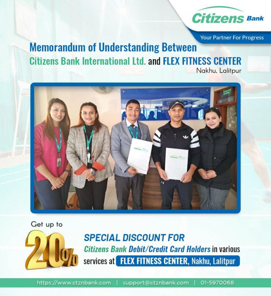 सिटिजन्स बैंक र फ्लेक्स फिटनेस सेन्टरबीच समझदारी