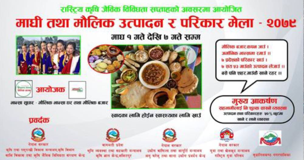आयोजक दाहाल भन्छन्, ‘हामीले यसै पनि यहाँ ७५३ पालिकाका खाद्य वस्तु तथा प्रांगारिक उत्पादन प्रवर्द्धन गर्दै आइरहेका छौं । हामी कहाँ सातै प्रदेशका परिकार खान र लान पाइने व्यवस्था छ । जैविक विविधता दिवसको समेत अवसर पारेर हामी आयोजक तथा सहआयोजकले मौलिक खाना प्रवद्र्धनको लागि यो कार्यक्रम आयोजना गरिएको हो ।’