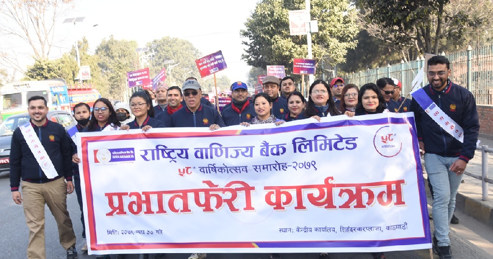 राष्ट्रिय वाणिज्य बैंकको ५८औं वार्षिकोत्सवको अवसरमा प्रभातफेरी कार्यक्रम सम्पन्न