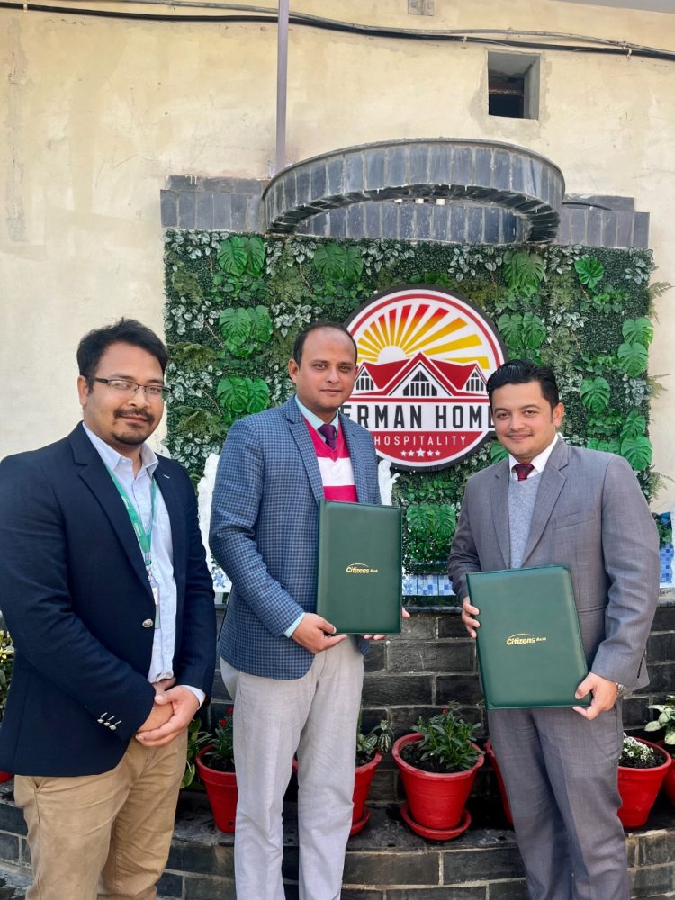 काठमाडौं । सिटिजन्स बैंक इन्टरनेसनल लिमिटेड र गठ्ठाघर, भक्तपुर स्थित जर्मन होम्स हस्पिटालिटीबीच सिटिजन्स बैंकका कार्डबाहक ग्राहकहरूलाई विशेष छुट दिने समझदारीपत्रमा हस्ताक्षर भएको छ ।